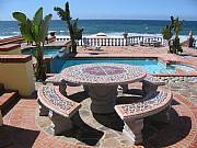 This well-designed ocean-front home is located in one of the most beautiful ocean-front communities in Baja Norte's Gold Coast. With around 1,400 square feet of ocean-front terraces made of brick and stone hanging on a cliff above the beach, this house dazzles you with surprises at every turn. Total construction: 2,800 sq ft approximately.