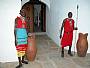 There is 2 magnifique massive Lamu doors at the entrance, a hall with a rocky inside colored garden.A massage table in a room.